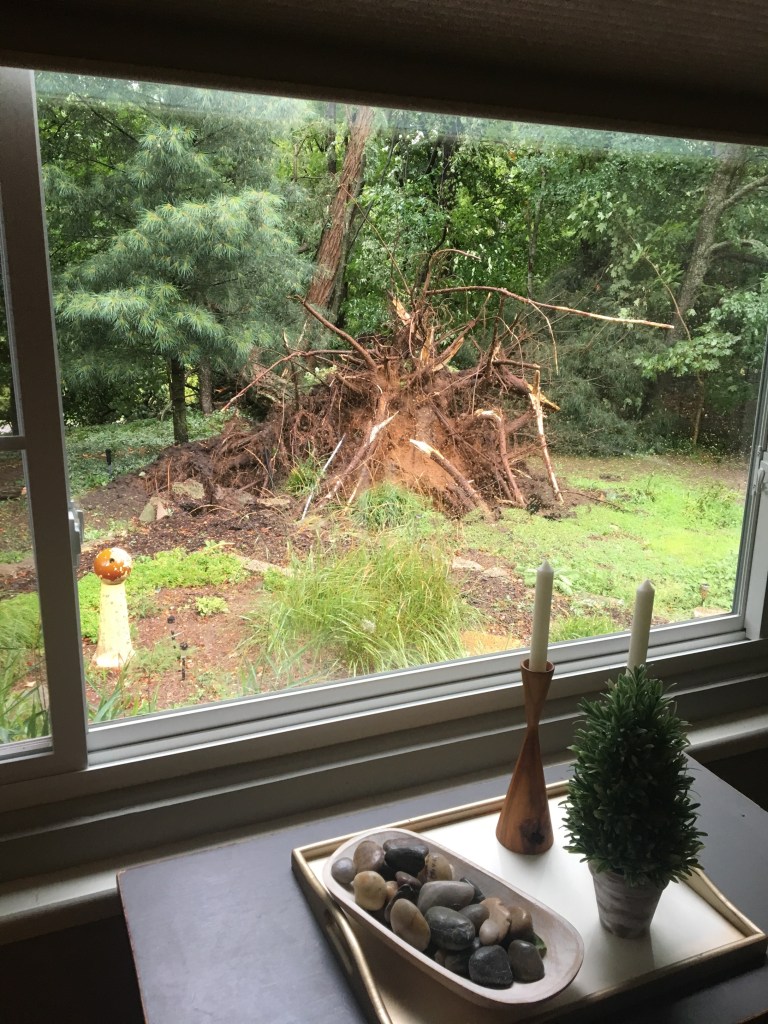 This is just one tree and it’s huge! The tree you see in the background leaning towards the right is even bigger. It is coming down today as well. There are other trees that are down but I couldn’t get a good picture.