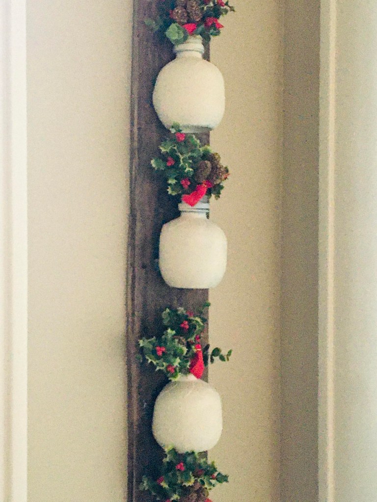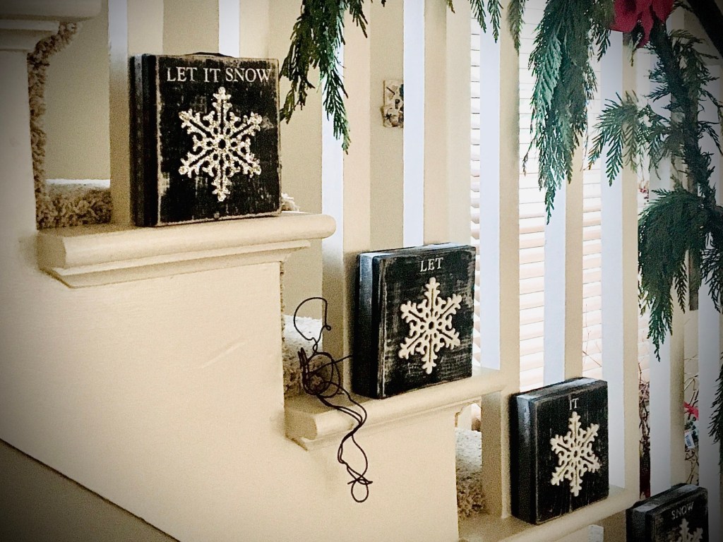 The blocks on the step are some of my favorite things I’ve made. And the next two pictures show how easy it is to use Dollar Tree items and make some really great decorations.