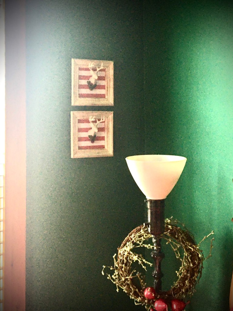 Pictures I put together with DT reindeer heads on red and white striped paper in white square frames